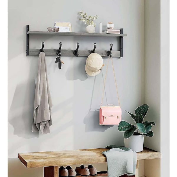 Rustic Gray MDF Wall Mount Coat Rack with Shelf