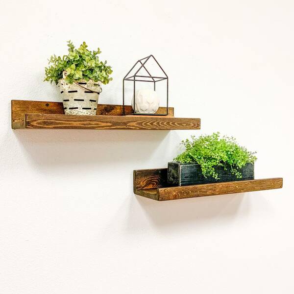 Rustic Luxe 7 in. x 24 in. Dark Walnut Pine Floating Decorative Wall Shelves