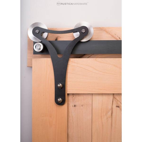 84 in. Raw Steel Sliding Barn Door Hardware Kit with Triangle Hangers and Falcon Pull