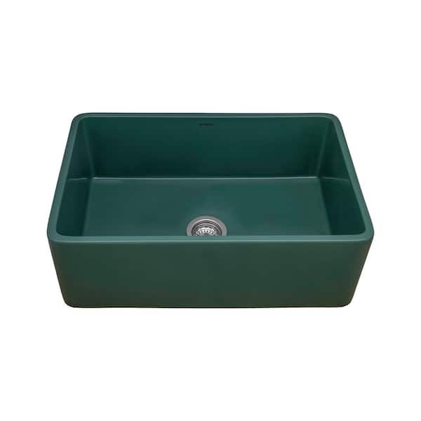 Fiamma 33 in. Apron-Front Farmhouse Single Bowl Fireclay Reversible Kitchen Sink in Emerald Green