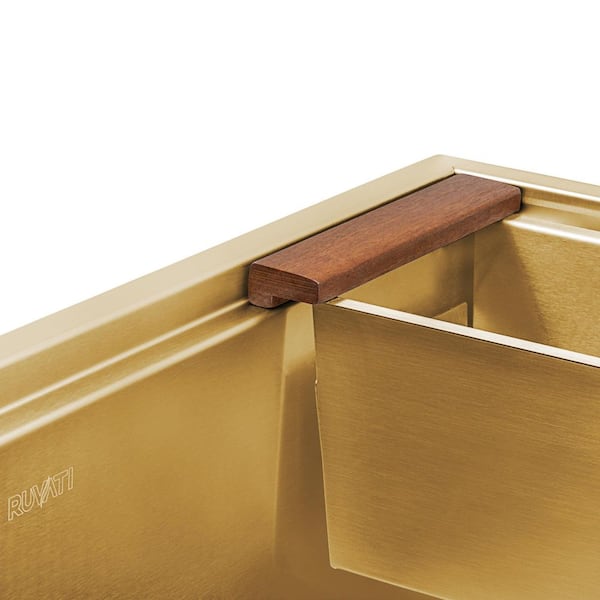 LedgeFit 17 in. Replacement Gold Stainless Steel Colander with Wooden Handles for Workstation Sinks