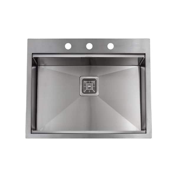 25 in. Drop-In/Undermount Single Bowl 16-Gauge Stainless Steel Kitchen Sink Workstation with Accessories
