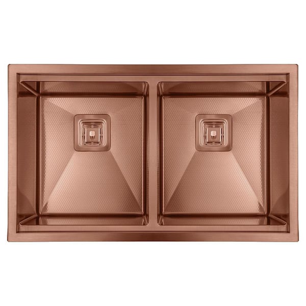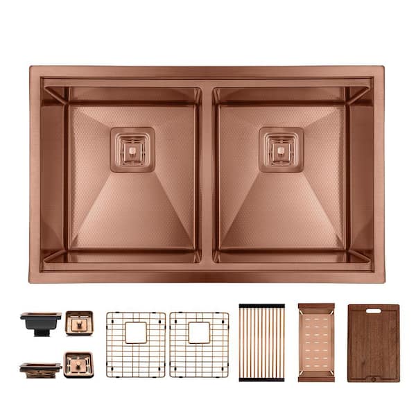 32 in. Undermount Double Bowl 16-Gauge Copper Hexagon Textured Stainless Steel Workstation Kitchen Sink Accessories