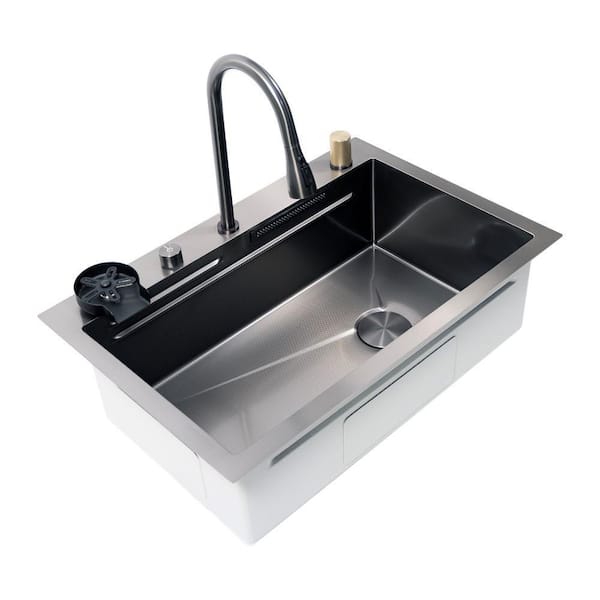 All-In-One 33 in. Drop-In Single Bowl 16 Gauge Black Hexagon Texture Stainless Steel Workstation Kitchen Sink