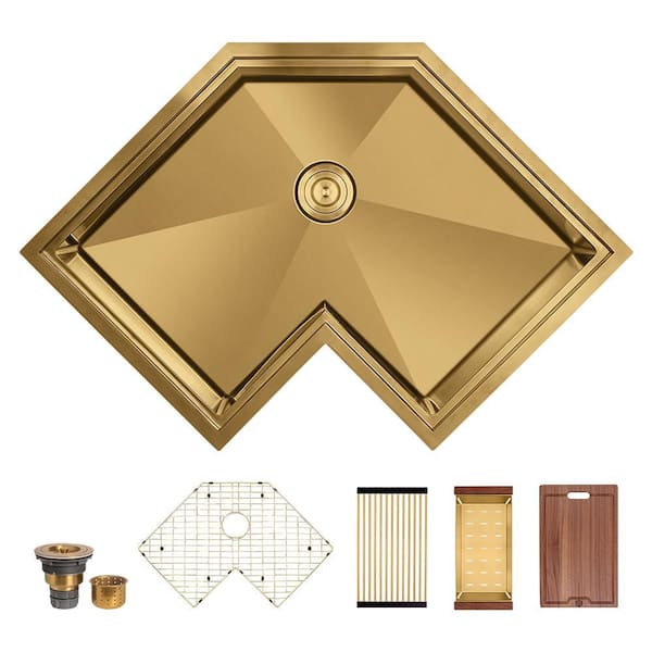 Gold 16 Gauge Stainless Steel 30 in Single Bowl Corner Undermount Workstation Kitchen Sink with Accessories