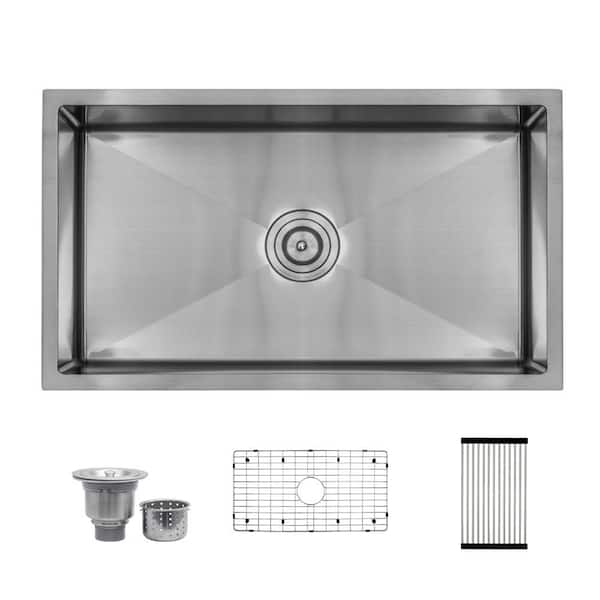 Strictly Kitchen and Bath 16 Gauge Stainless Steel 31.5 in. Single Bowl Undermount Kitchen Sink with Grid and Dry Rack