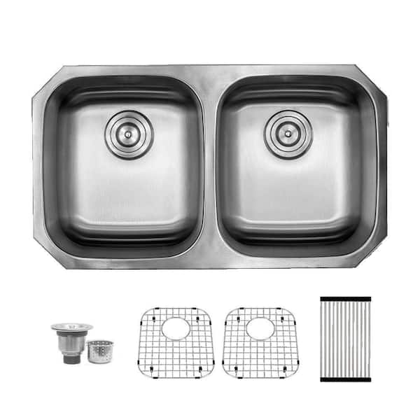 Strictly Kitchen and Bath32 in. Undermount Double Bowl 18-Gauge Stainless Steel Kitchen Sink with Grids and Dry Rack