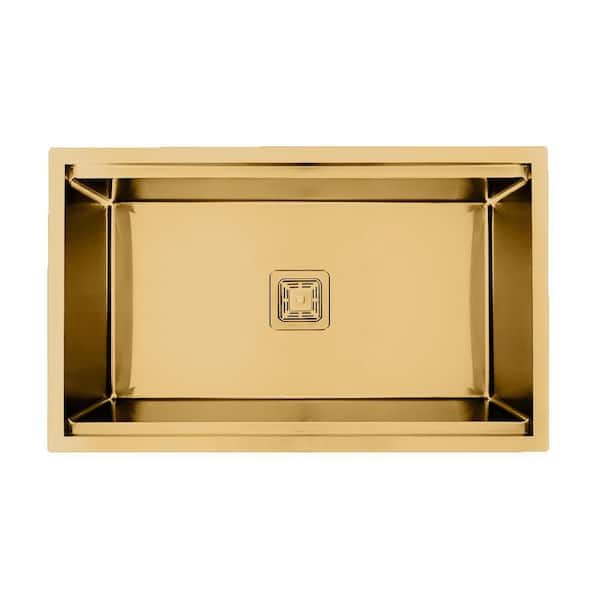 Undermount Workstation 32 in. Gold Stainless Steel Single Bowl Sink With Center Square Drain And Accessories