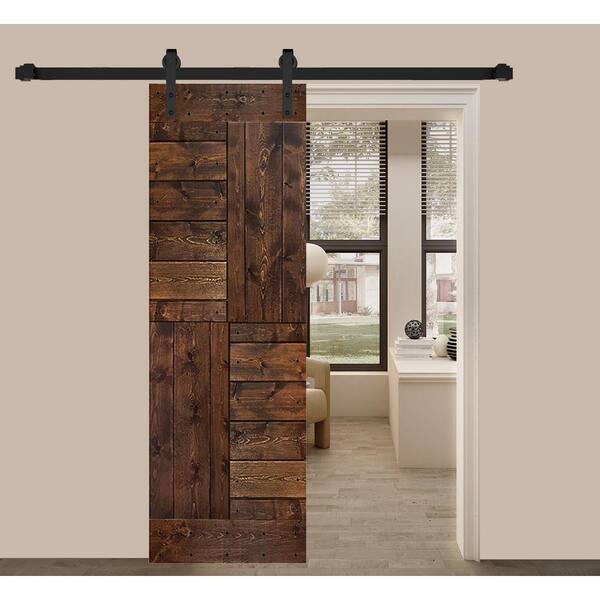 S Series 30 in. x 84 in. Dark Walnut Finished DIY Solid Wood Barn Door Slab - Hardware Kit Not Included