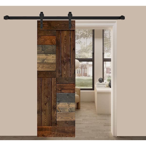 S Series 30 in. x 84 in. Multicolour Finished DIY Solid Wood Barn Door Slab - Hardware Kit Not Included