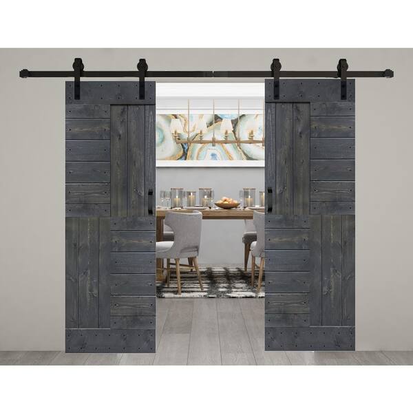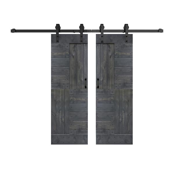 S Series 60 in. x 84 in. Carbon Gray Finished DIY Solid Wood Double Sliding Barn Door with Hardware Kit