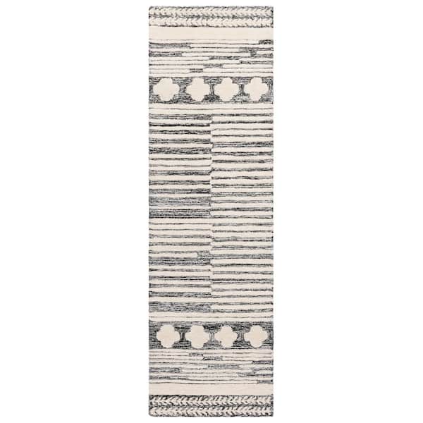 Abstract 2 ft. x 8 ft. Black/Ivory Striped Aztec Runner Rug