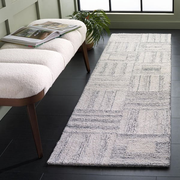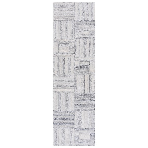 Abstract 2 ft. x 8 ft. Gray Geometric Abstract Grid Runner Rug