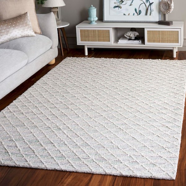 Abstract 4 ft. x 6 ft. Green/Ivory Geometric Diamonds Area Rug