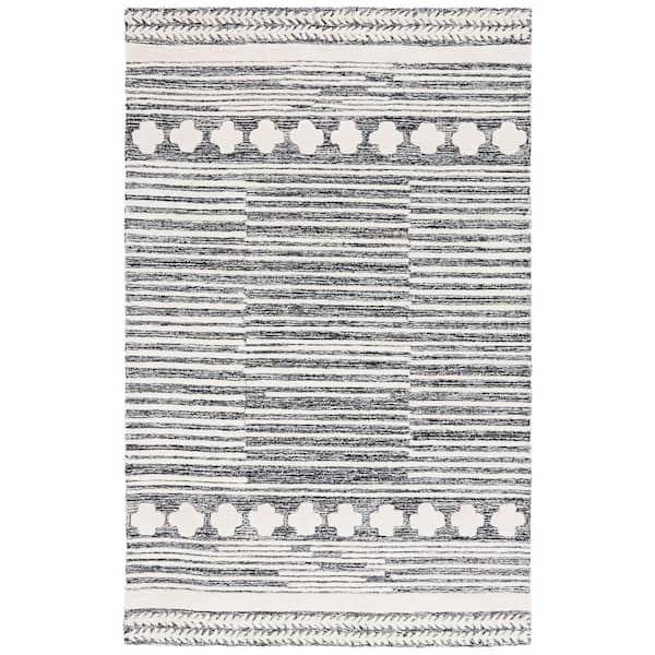 Abstract 5 ft. x 8 ft. Black/Ivory Striped Aztec Area Rug