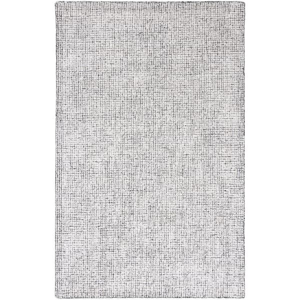 Abstract 5 ft. x 8 ft. Ivory/Black Solid Color Area Rug