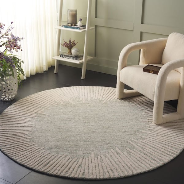 Abstract 6 ft. x 6 Sage/Ivory Geometric Round Rug