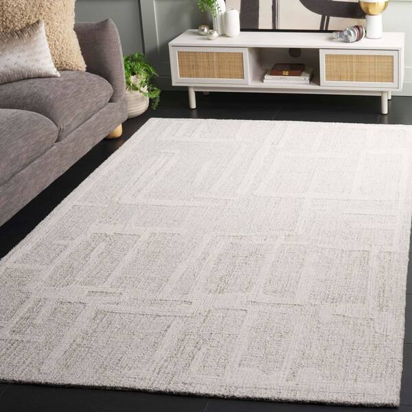 Abstract 6 ft. x 6 ft. Sage Green/Ivory Abstract Lines square Area Rug