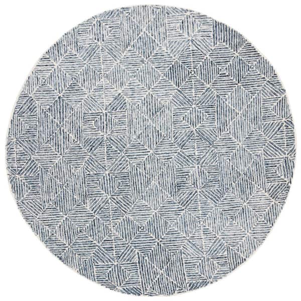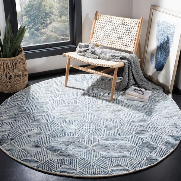 Abstract Blue 6 ft. x 6 ft. Round Geometric Area Rug