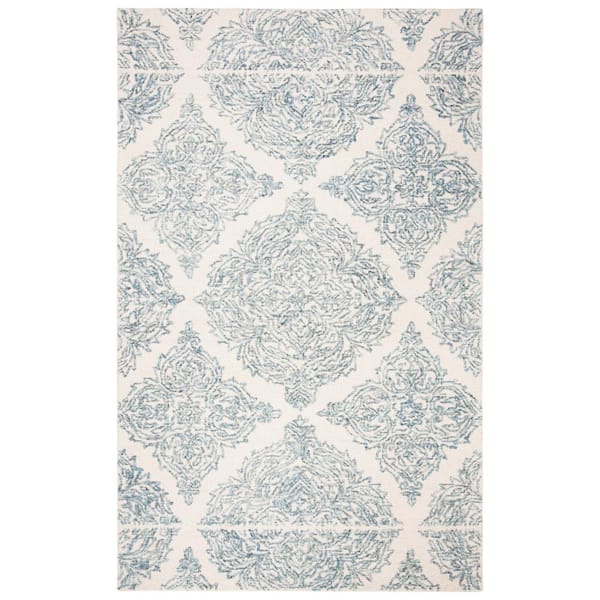 Abstract Ivory/Blue 9 ft. x 12 ft. Trellis Area Rug