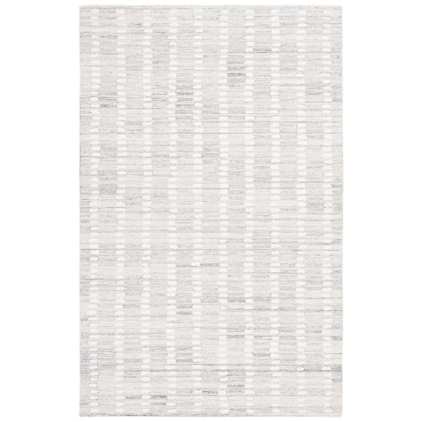 Abstract Silver/Ivory 3 ft. x 5 ft. Striped Stone Area Rug