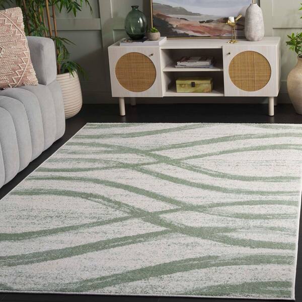 Adirondack 4 ft. x 4 ft. Ivory/Sage Waves Square Area Rug