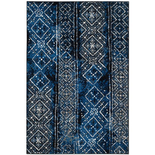 Adirondack Blue/Black 6 ft. x 9 ft. Border Area Rug