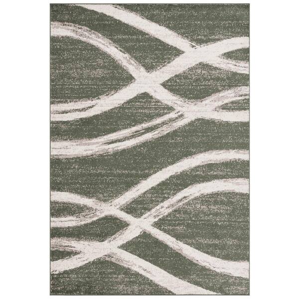 Adirondack Dark Green/Ivory 8 ft. x 10 ft. Waves Area Rug