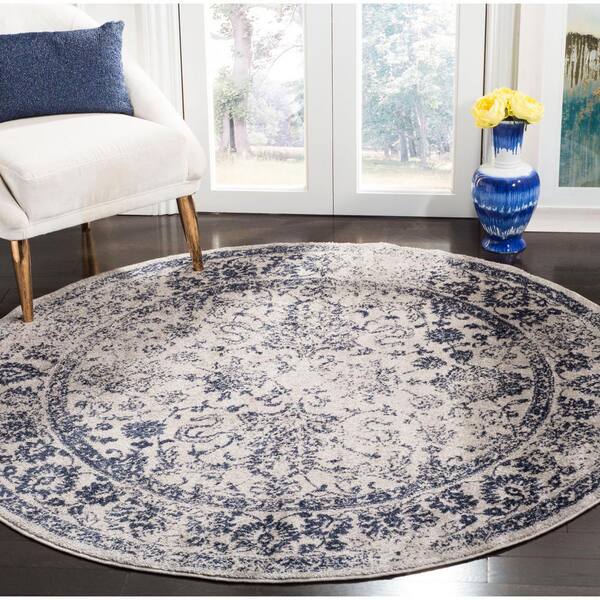 Adirondack Gray/Navy 3 ft. x 3 ft. Border Distressed Round Area Rug