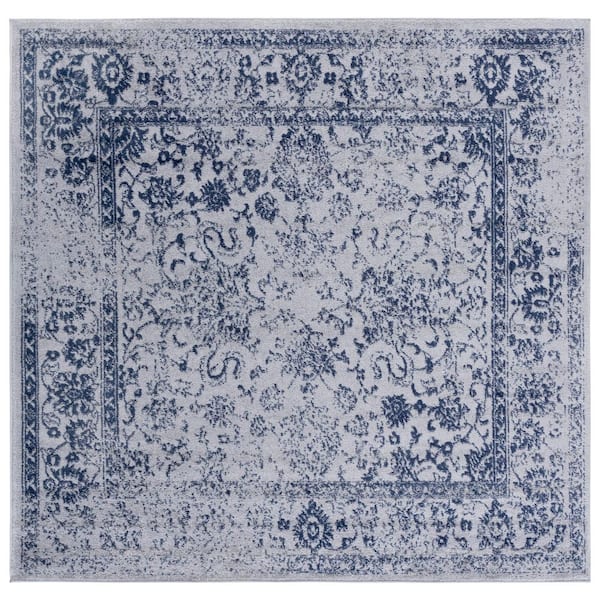 Adirondack Gray/Navy 4 ft. x 4 ft. Border Distressed Square Area Rug