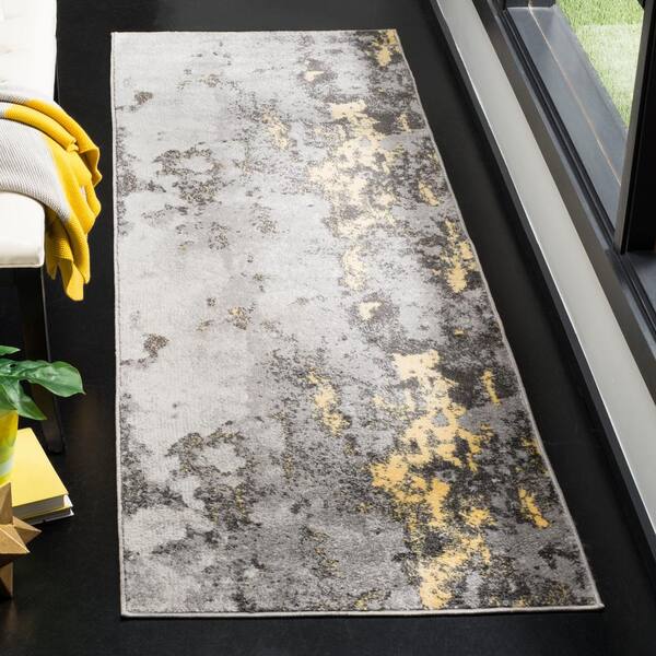 Adirondack Gray/Yellow 3 ft. x 14 ft. Abstract Runner Rug