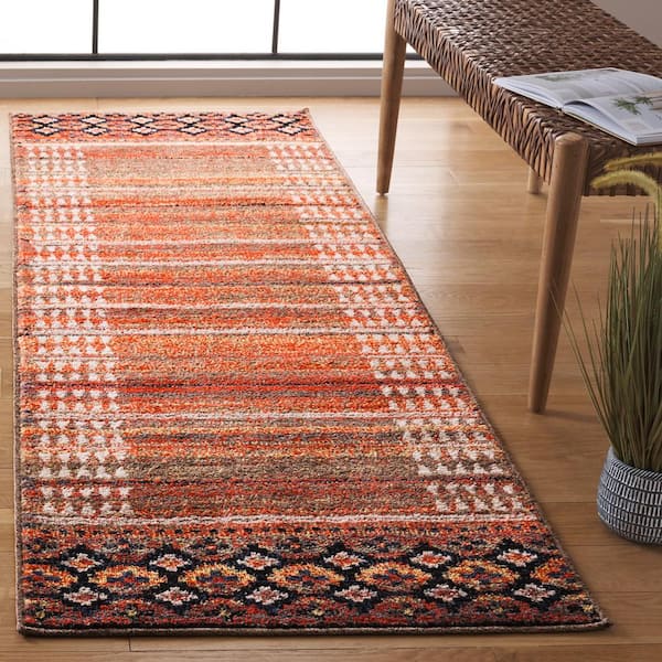 Adirondack Ivory/Blue Gray 3 ft. x 8 ft. Diamond Border Runner Rug