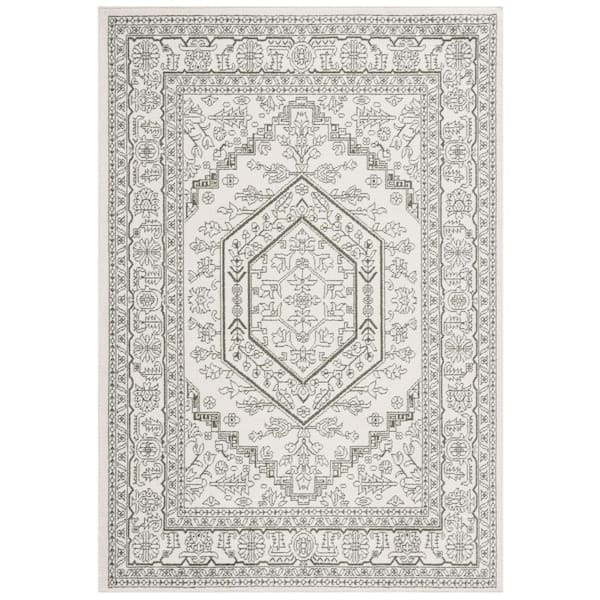 Adirondack Ivory/Dark Green 9 ft. x 12 ft. Border Medallion Area Rug