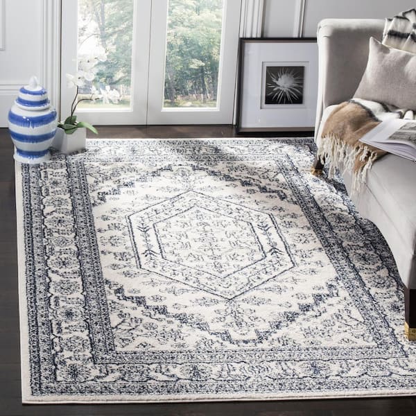 Adirondack Ivory/Navy 6 ft. x 6 ft. Border Medallion Square Area Rug