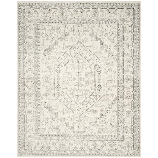 Adirondack Ivory/Silver 8 ft. x 10 ft. Border Medallion Area Rug