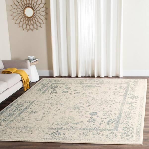 Adirondack Ivory/Slate 10 ft. x 14 ft. Border Distressed Area Rug