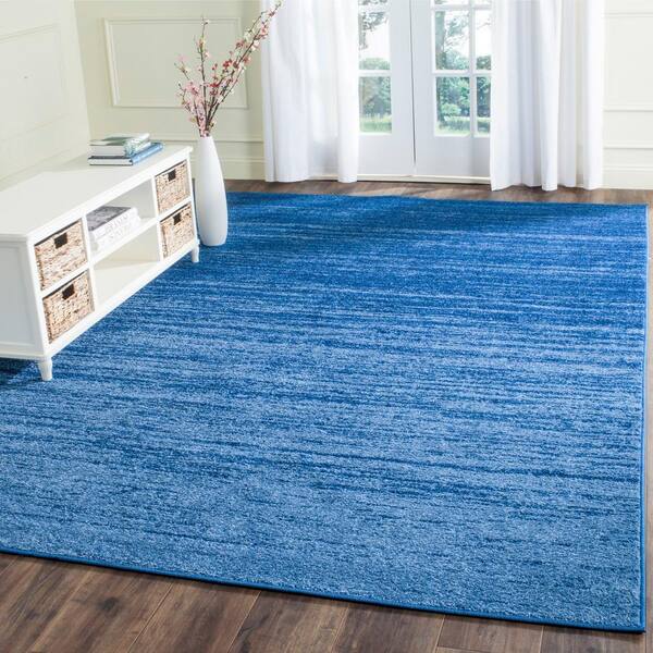Adirondack Light Blue/Dark Blue 9 ft. x 9 ft. Solid Color Striped Square Area Rug