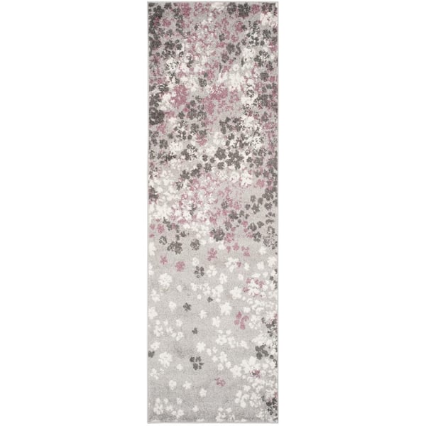 Adirondack Light Gray/Purple 3 ft. x 12 ft. Floral Runner Rug