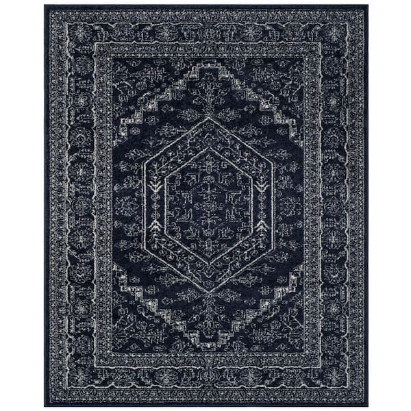 Adirondack Navy/Ivory 9 ft. x 12 ft. Border Medallion Area Rug