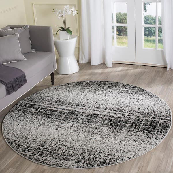 Adirondack Silver/Black 6 ft. x 6 ft. Round Gradient Solid Area Rug