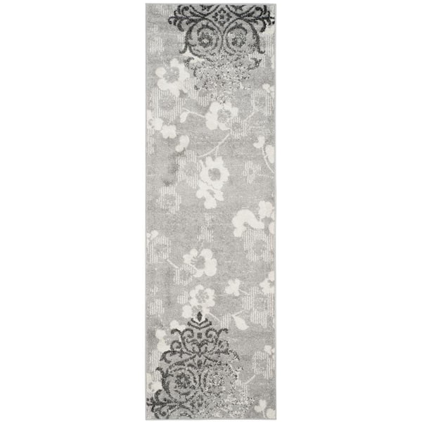 Adirondack Silver/Ivory 3 ft. x 10 ft. Floral Runner Rug