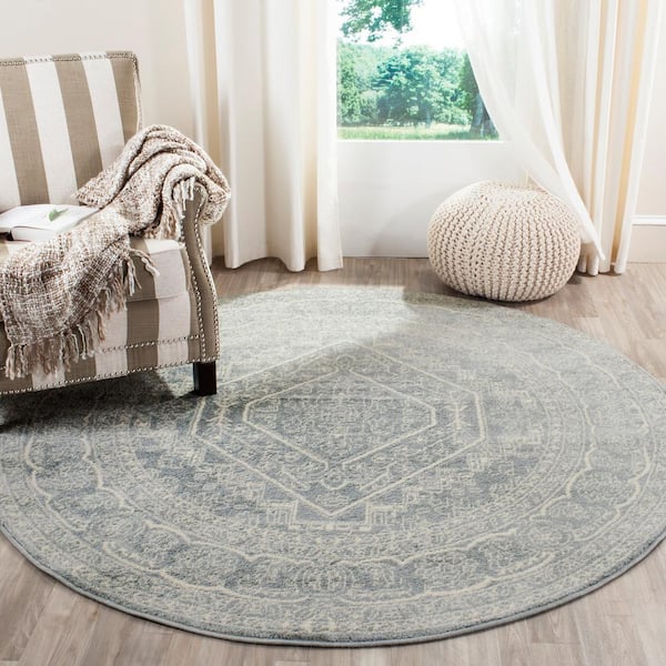 Adirondack Slate/Ivory 4 ft. x 4 ft. Round Border Area Rug