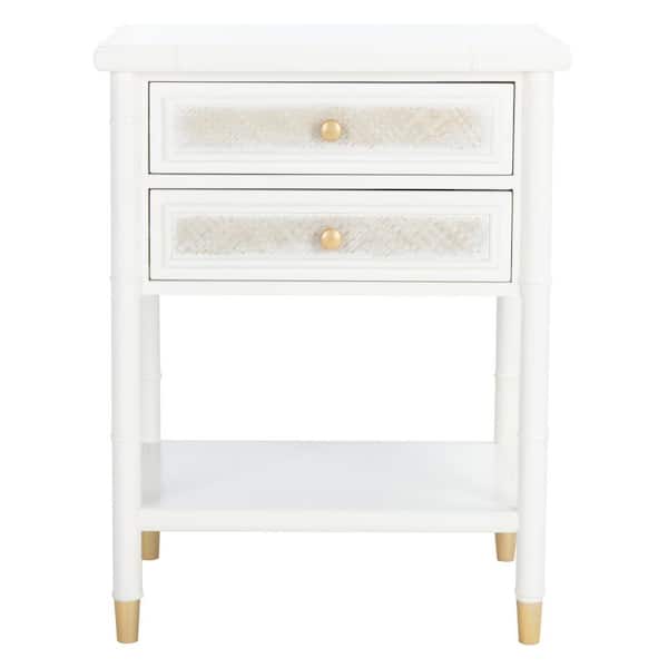 Ahab 20.5 in. White/Gold Rectangle Wood Storage End Table