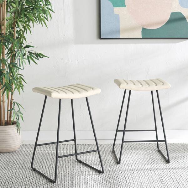 Akito 30 in. Cream and Black Cushioned Bar Stool (Set of 2)