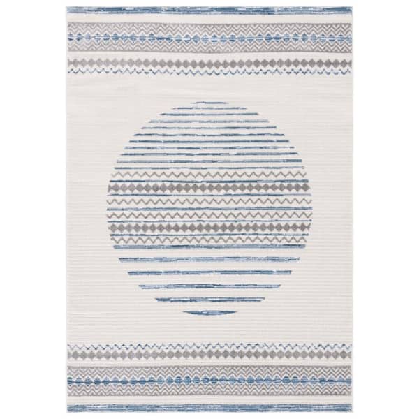 Alamo Ivory/Navy 5 ft. x 8 ft. Modern Geometric Area Rug