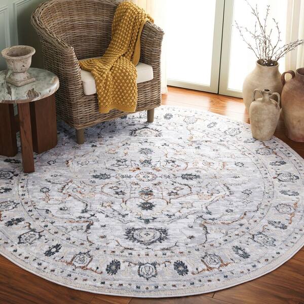Alenia 7 ft. x 7 ft. Gray/Beige Gold Floral Medallion Round Area Rug