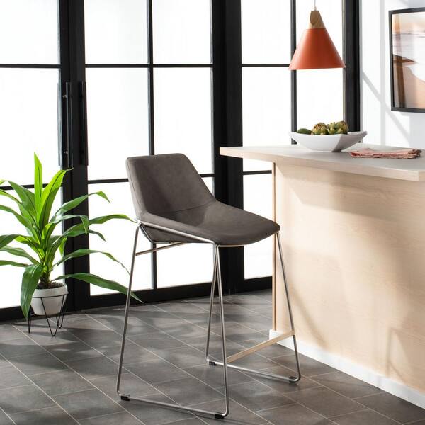 Alexis 27 in. Ash Gray/Silver Iron Low Back Bar Stool