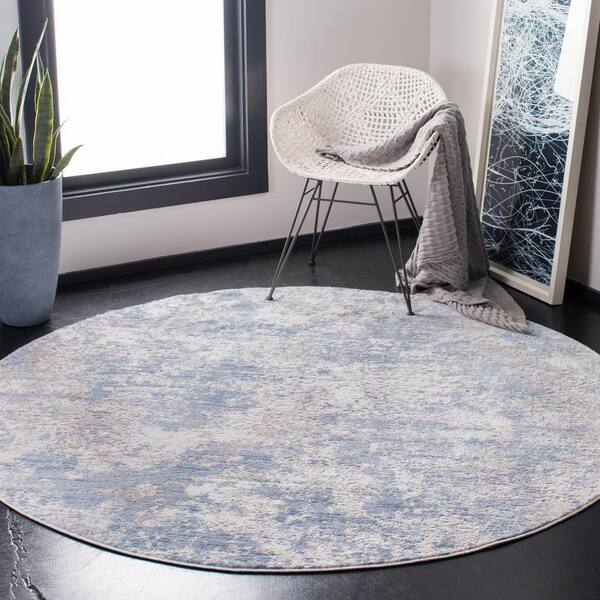 Amelia 12 ft. x 12 ft. Gray/Blue Distressed Abstract Round Area Rug