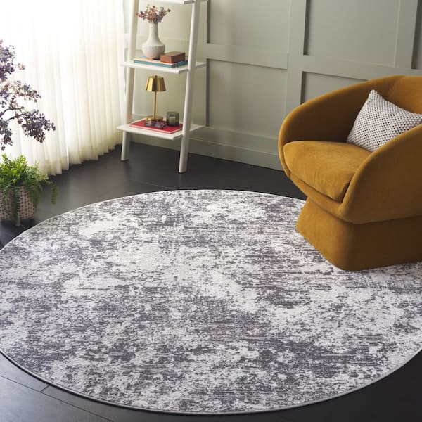 Amelia 7 ft. x 7 ft. Charcoal/Ivory Distressed Abstract Round Area Rug