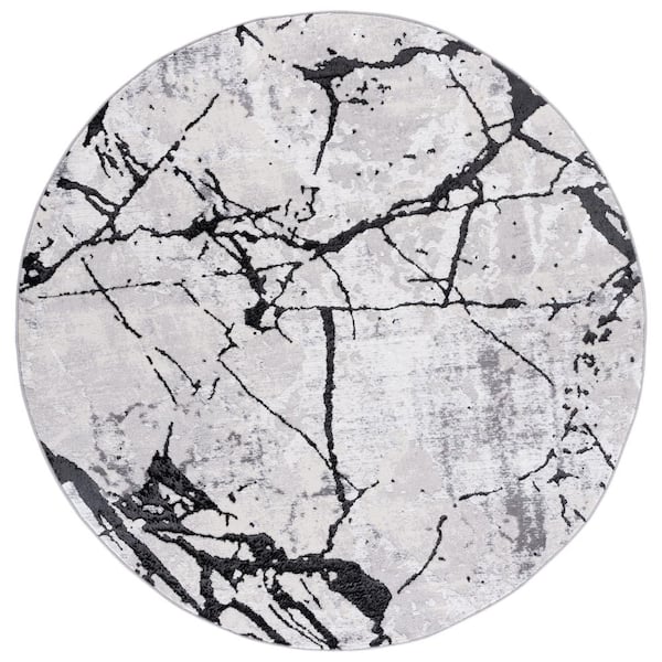 Amelia Gray/Black 5 ft. x 5 ft. Round Abstract Distressed Area Rug